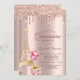 Eiffel Tower Present Balloons Rose Gold Drips Invitation