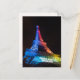 Paris Postcard of the Eiffel Tower lit up in rainbow colours.