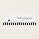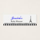 This classic small favour tag design features a silhouette of the Eiffel Tower and a black and white striped and dotted bottom border. Your custom text is in a combination of a bright blue script and black calligraphic font. This thin favour tag would work nicely for a Parisian themed baby shower.