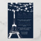 A modern, chic and glamourous sweet sixteen with a hand drawn silver glitter french Paris theme Eiffel Tower with silver glitter sparkles confetti, white string lights on an editable dark navy blue background with real silver foil.