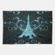Eiffel Tower Teal Floral Swirls Kitchen Towel