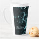 Enjoy your latte with a personalised Eiffel Tower teal floral swirls latte mug. Latte mug design features a vibrant teal Eiffel Tower embellished with delicate floral swirls. Additional colours available with this design as well. This item may be personalised with a name, monogram or favourite saying of your choosing. Please