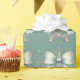 Gift-wrap with an artistic Eiffel Tower with bow on a bed of yellow stones.