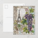 Eiffel Tower with vintage Grapes Holiday Postcard