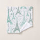 Eiffel towers illustrated in turquoise and blue/green grey with hand-drawn style hearts in a repeating pattern. Personalise with your name or message in purple font.