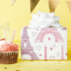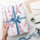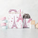 Eiffel towers illustrated in pink and purple with hand-drawn style hearts in a repeating pattern.