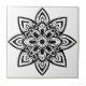 Ceramic tile in an abstract, black and white flower and leaf mandala in an eight point star pattern