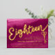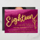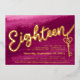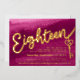Eighteen script text and key 18th birthday party simple gold foil or your own foil colour on a abstract art red pink painted wash invite. Personalise this 18th birthday party script and 18 key modern graphic milestone birthday invitation with your own birthday party event details, and your own birthday girls photo on the reverse. Other years colours and matching items are available. © Original design by Sarah Trett for www.mylittleeden.com on Zazzle.