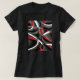 Eighties Red White Grey Line Curve Pattern On Blac T-Shirt