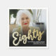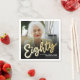 eighty black and shiny gold metallic affect script text photo napkins. Personalise this 80th birthday party script photo birthday napkin with your own birthday girls name and party date, and a photo of your birthday girl. Other years and matching items are available. © Original design by Sarah Trett for www.mylittleeden.com on Zazzle.