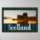 Beautiful scenic photograph of Eilean Donan Castle in the Scottish Highlands. Clan Mackenzie tartan plaid border