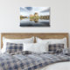 Canvas landscape print of historic Eilean Donan Castle on a quiet morning with reflection in the still water at the western coast of Scotland, near Isle of Skye.
