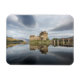 Rectangular photo magnet with historic Eilean Donan Castle on a quiet morning with reflection in the still water at the western coast of Scotland, near Isle of Skye.