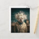 A charming French bulldog dressed as a quirky scientist, complete with wild white hair and a lab coat, posed in front of a chalkboard filled with equations. The perfect blend of cute and clever, ideal for pet lovers and science fans alike.