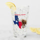 A pint glass that boldly shows the Texas state outline and flag colours along with a longhorn. A "one of a kind" souvenir of a visit to Texas. Personalise by changing the city to one of your choice.