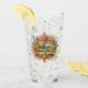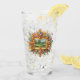 This glass has a design of a golden frame that is elaborate with semi precious stones.