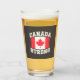 This patriotic glass design speaks volumes to Canadians who love their country. "Elbows Up" text with beaver silhouette on one side, and maple leaf flag graphics with "Canada Strong" text on the other.