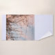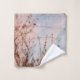 Budded elder branches silhouetted by a pastel sky on a rustic textured wood background.