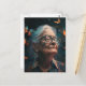 AI generated art of an elderly woman surrounded by butterflies in shades of blue and orange