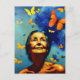 Elderly Woman With Butterflies Postcard