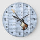 Elec Guitar ~ Rolled Sheet Music ~ Blue Tint Back~ Large Clock