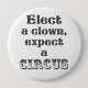 ParkLaneII - Fun Anti Trump protest Button, with 'Elect a clown, expect a circus' slogan in fun, gray, traditional circus typography.