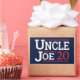 'Uncle Joe '20' quote on a blue background.