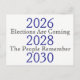 Elections are coming 2026 2028 2030. The people remember. Design description: White customisable background with black and blue text. Text description: 2026 Elections Are Coming 2028 The People Remember 2030