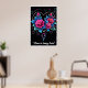 This vibrant poster features a striking heart-shaped design filled with glowing neon roses against a deep black background. The roses shine in bright magenta pink with electric blue leaves, creating a dramatic contrast that gives them an almost bioluminescent quality. The heart outline is rendered in white neon, while smaller heart shapes and decorative swirls in pink and turquoise dance around the composition. A bold lightning bolt in dual-tone pink and blue adds a modern, energetic element at the bottom of the design. Delicate rosebuds and flourishes surround the main elements, enhancing the dynamic feel. The caption at the bottom reads "Love in Every Petal" in an elegant retro script, perfectly complementing this contemporary take on romantic imagery. The entire aesthetic combines traditional romantic symbols with a modern, electric nightlife vibe.