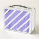 Electric blue and beige five stripe pattern metal lunch box