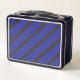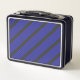 Electric blue and charcoal five stripe pattern metal lunch box