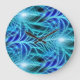 Electric Blue Luminous Fractal Repeating Pattern Large Clock
