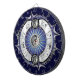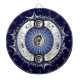 Electric blue Yin Yang with starburst in the centre is flanked by Chinese text on a silver background. Text translates to a complete meeting of the minds between two people.