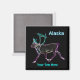 A bright, neon-like rendering of a caribou (Rangifer tarandus), also known as a reindeer. Text reading, "Alaska" appears in glowing blue and white. Customise by adding your own additional text. Inspired by the Northern Lights.