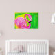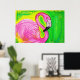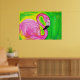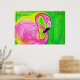 A happy, bright and cheerful artwork celebrating the popular tropical flamingo in hues of yellow, green and pink.