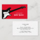 Electric guitar lessons business card template. Professional visiting cards with rock guitar instrument logo. Modern visit cards for guitarist giving private lessons, performer, shop, store, new company, studio boss, employees, DJ's, music producer, singer, music band, music teacher, instructor, musician etc. Choose between different paper qualities and thicknesses. Standard size. Red or custom background colour.