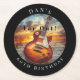 Electric Guitar Ocean Sunset Music Notes Round Paper Coaster