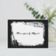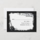 This response card features a fun design of white torn paper with music in black. This is shown on linen paper. While you can change paper types, metallic is not recommended because your guests will need to write on these, and ink on metallic paper smudges unless you are careful to let it dry.