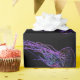 Neon, glowing purple and pink jellfish swimming by against a black background.