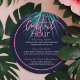 Celebrate your marriage with a splash of neon! Our electric love neon wedding cocktail hour menu is perfect for couples seeking a bold nightlife vibe, with a modern retro-classy aesthetic. Inspired by the beauty and trendiness of neon signs, we’ve created glowing pink neon style sign typography, paired with illuminating electric green and aqua tropical palm leafy greenery. A moody dark blue backdrop is paired with electric accents of pink, green & aqua to create this trendy, electrifying design-savvy wedding design. All of the watercolor artwork is hand-painted by us with custom typographic effects to create our unique memorable neon wedding theme design.