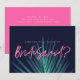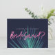 Celebrate your marriage with a splash of neon! Our electric love neon wedding "Will You Be My Bridesmaid? card design is perfect for couples seeking a bold nightlife vibe, with a modern retro-classy aesthetic. Inspired by the beauty and trendiness of neon signs, we’ve created glowing pink neon style sign typography, paired with illuminating electric green and aqua tropical palm leafy greenery. A moody dark blue backdrop is paired with electric accents of pink, green & aqua to create this trendy, electrifying design-savvy wedding design. All of the watercolor artwork is hand-painted by us with custom typographic effects to create our unique memorable neon wedding theme design.