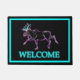 A bright, neon-like rendering of a moose, Alces alces, along with text reading, "WELCOME." Inspired by the Northern Lights.