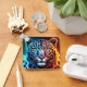 A vibrant neon leopard face featuring a split colour effect with glowing teal and orange light. The bold electric lines and intense eyes create a striking, high-contrast look that stands out against a dark background. This colourful animal-themed design is perfect for anyone who loves modern, high-energy imagery.