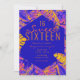 Electric Orange Blue Tropical Palm Leaves Sweet 16 Invitation