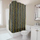 This striking print has vertical stripes consisting of shiny brass bands alternating with frayed vintage-style twisted electrical wires leaking sparks and glowing electrical currents - exactly the sort of thing you want to think about in the shower!
