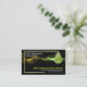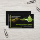 A metallic green electric circuit frame is powered by an electrical lightning. The lighted up bulb has a slogan caption "call me for a free quotation", which you can change to suit your service needs. Just below this lies the business name in green and its contact details. At the top left corner are your prestigious name and job title.