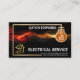 A faux copper electrical circuit frame is powered by a red electrical lightning that lights up a bulb with repair tools inside. Just beside the bulb stands your prestigious name. Near the base of the card are your business name and contact details with a gold "letter-e" electrician logo you can use.