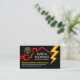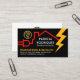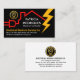Over at the top is a gold light bulb logo you can use, with its filament made of tools to use. Inside the red wiring home lies your prestigious name and job title. Near the base is the business name and its contact details.