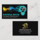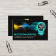 An all black cover features an electrical lightning that powers up a lightbulb that has a "letter-e filament" inside. ; The letter-e can represent your prestigious name, business name etc. Near the base lies the business name in bright cyan and its contact details.