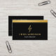 Promote your electrical services with this striking black and gold metallic business card designed for electricians, electrical contractors, and service technicians. The rich black background paired with premium gold accents creates a powerful, high-credibility look. Clean, modern typography highlights your name, license number, specialties, and contact details, making this print-ready card perfect for estimates, service calls, consultations, and client meetings. A refined yet strong design that instantly communicates professionalism and expertise.